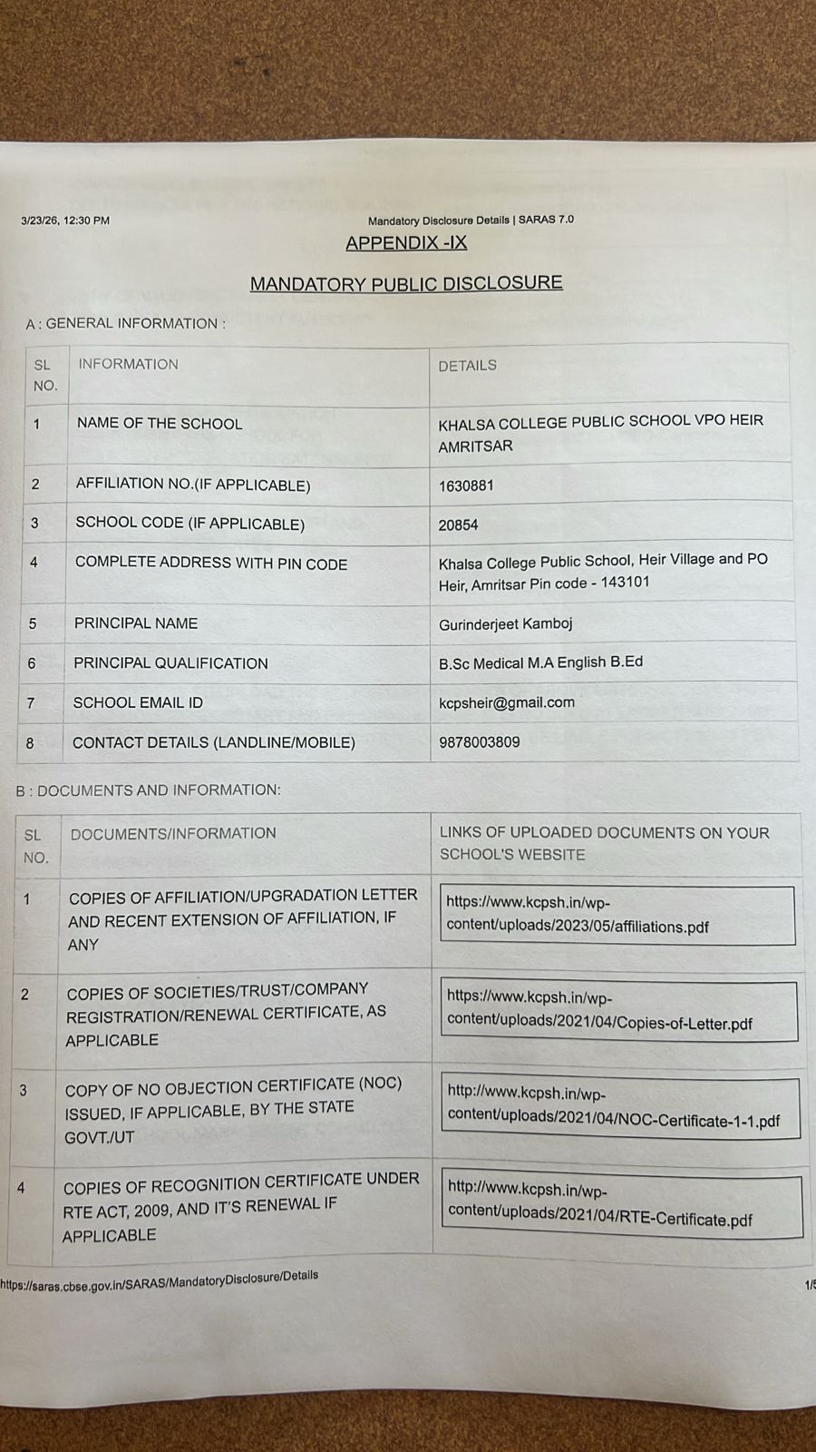 School Affilation Certificate