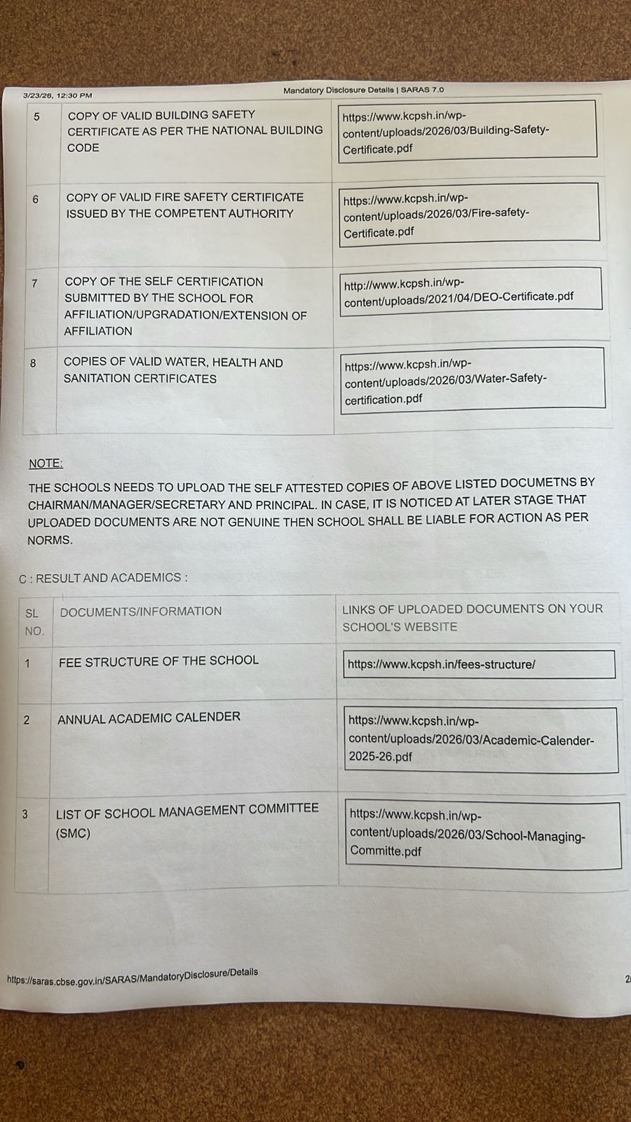 Self Affidavit of School