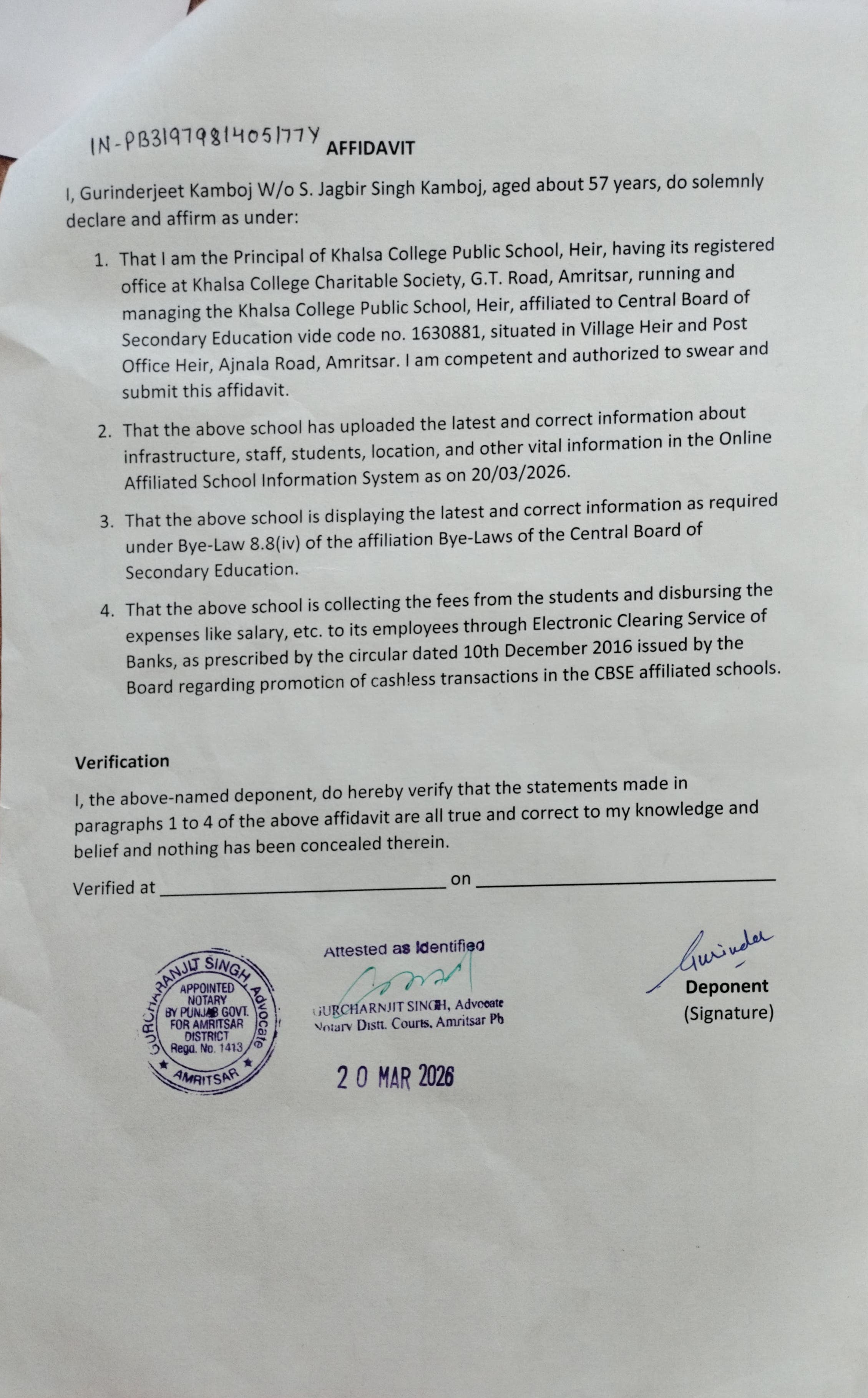 Self Affidavit of School