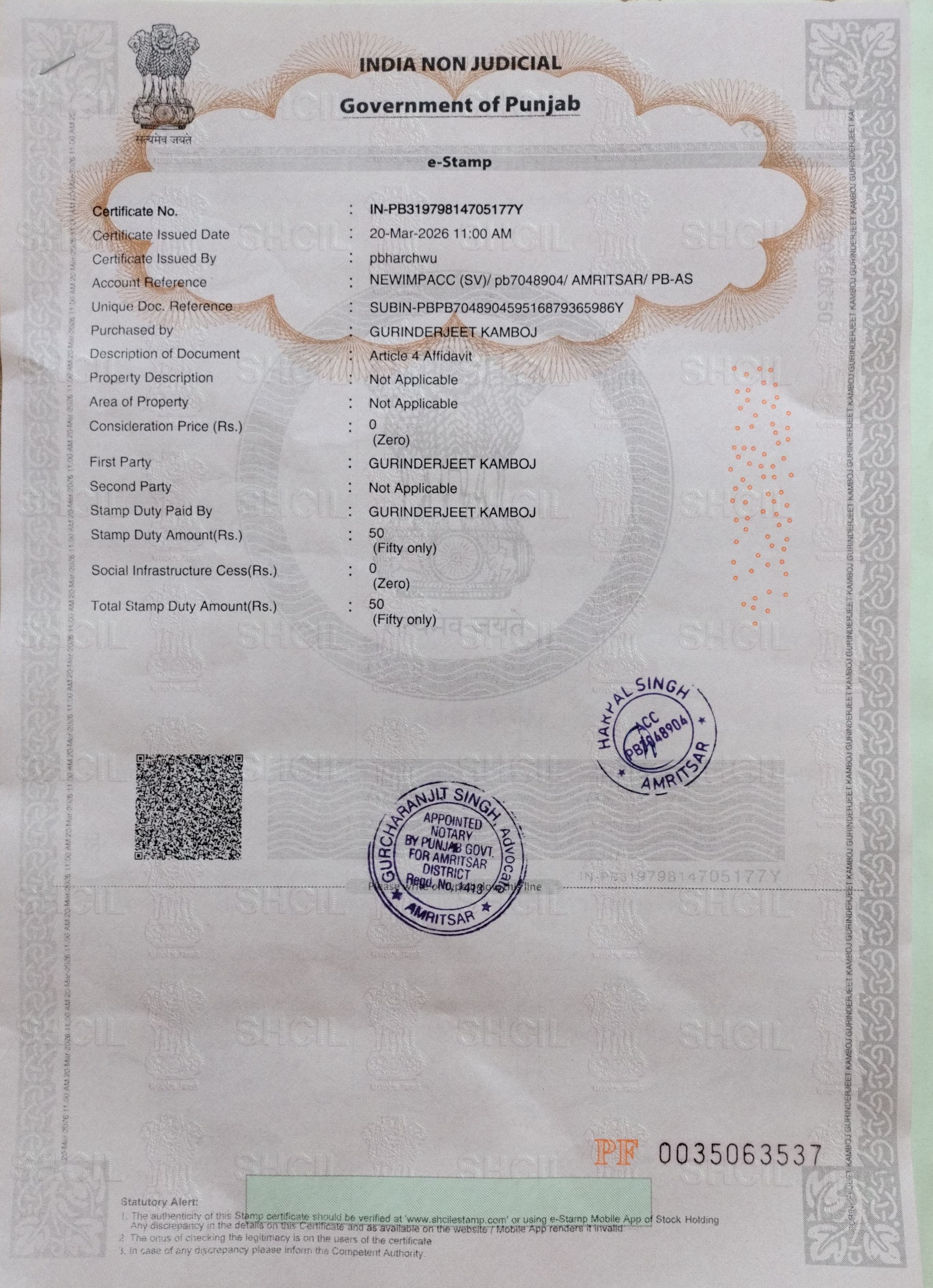 • Certificate of Land